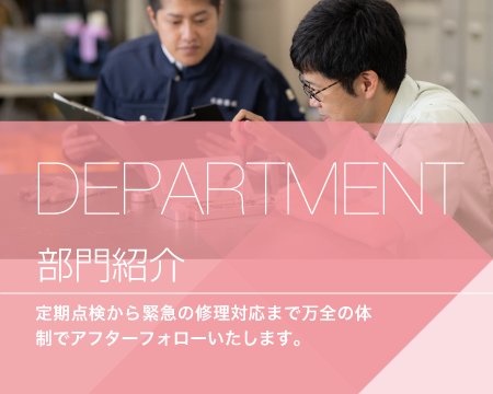 機器の修理及び定期点検業務を行っていますが、緊急な修理となれば出来るだけ素早い対応が取れる様、努力をしています。更に中間の訪問を設ける事によって自分の事も一緒に覚えて頂き、お客様との信頼関係構築をして行く事を常に心掛けています。